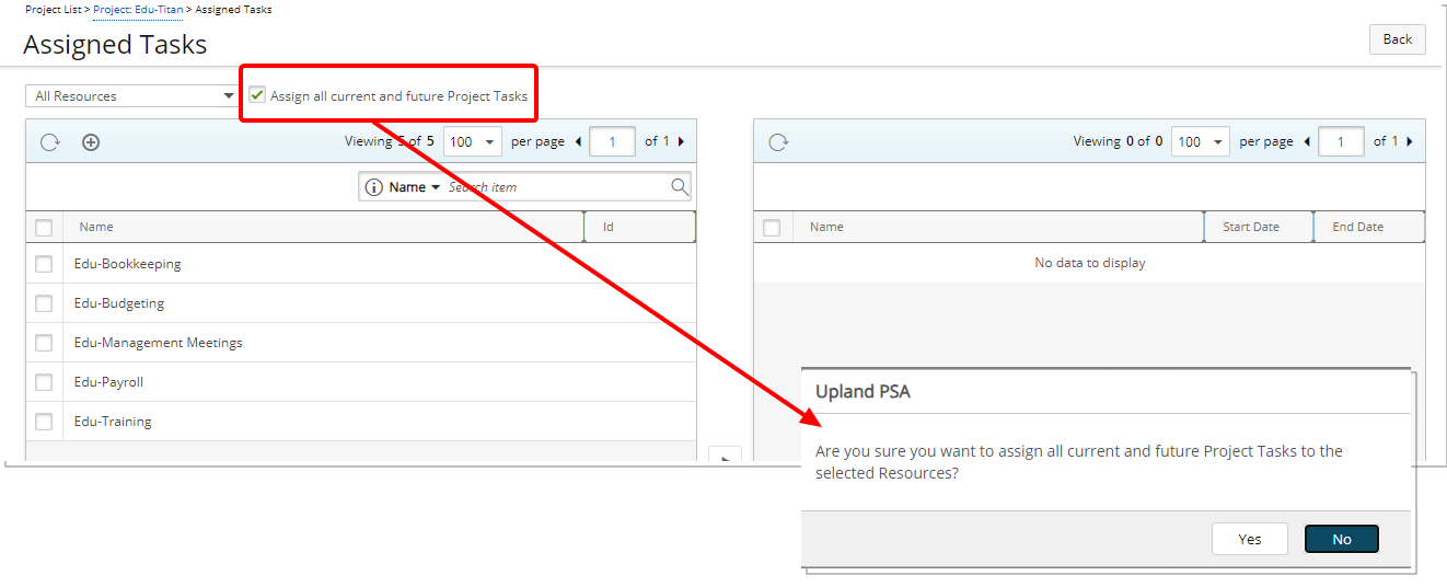 - Unchecking the Synchronize in PSA box prevents the Task from being added to PSA or removes it (if no Entries exist) when the Project is saved in UPP.