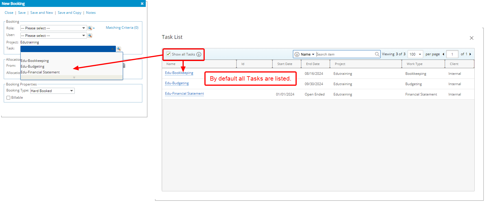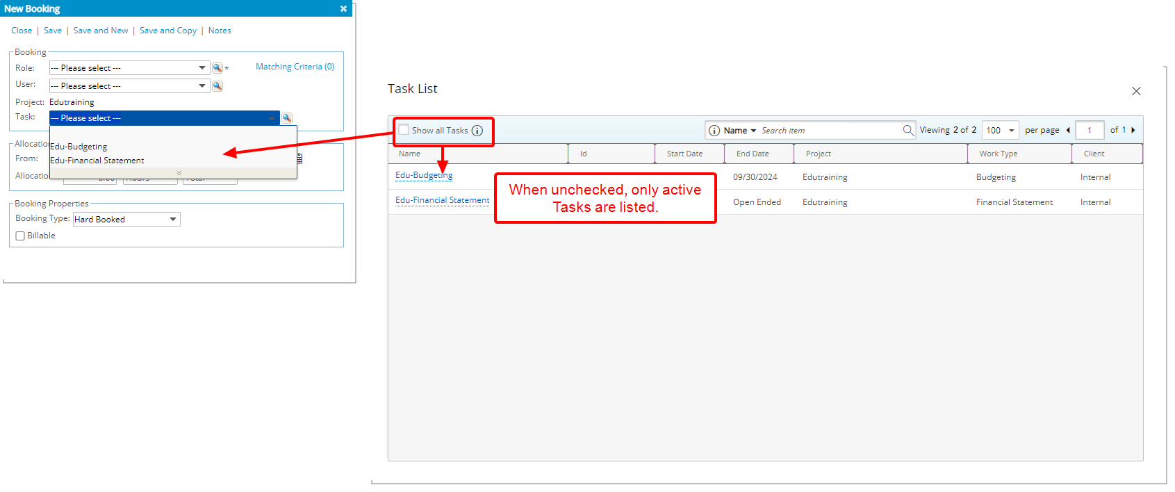 - From the Resources table: Booking Type, Units and Allocated hours or any other Resource Management Booking Attributes.