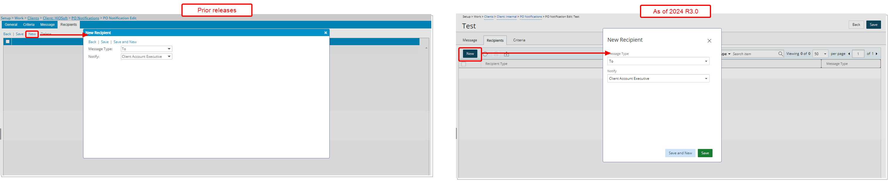 With the addition of the new Save & New button within the New Recipient dialog box, administrators can now quickly save a newly added recipient and immediately start adding another, without needing to close the dialog and click New again.