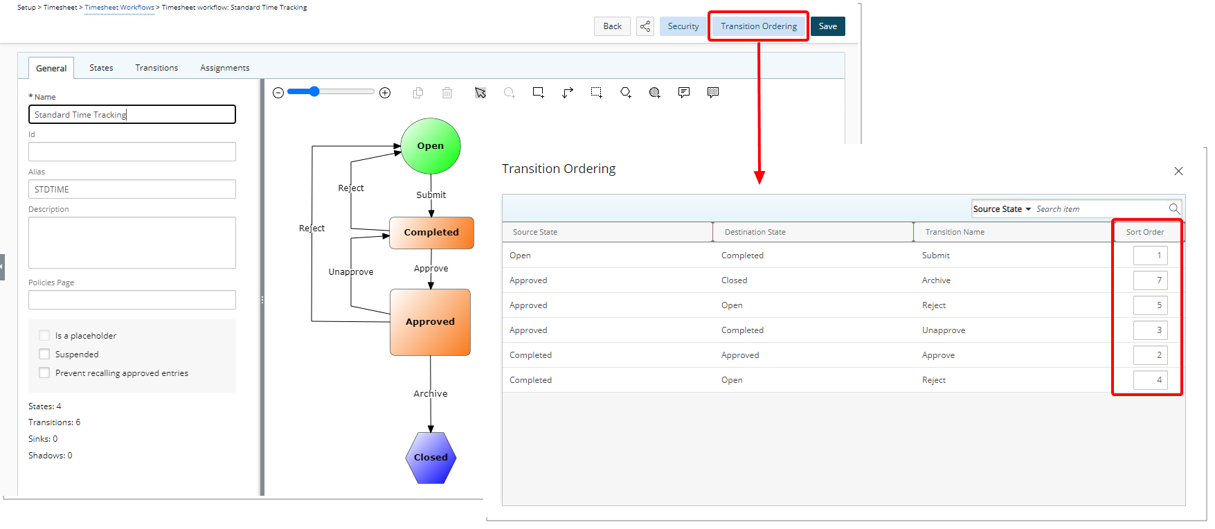 Note: If two or more transitions share the same Source State and Sort Order, they will be sorted alphabetically.