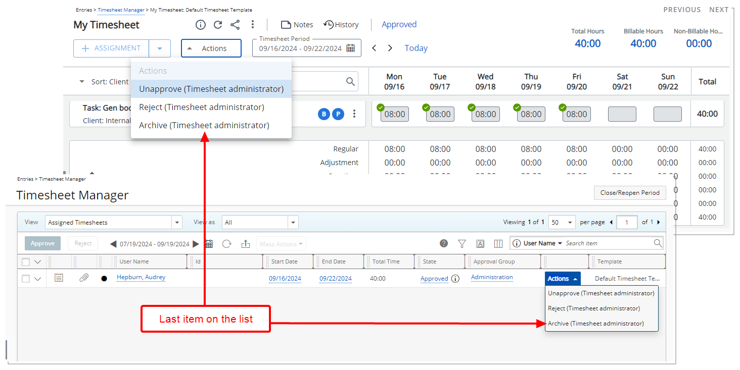 Benefit: By allowing administrators to prioritize frequently used actions, this improvement enhances user efficiency, reduces errors, and creates a more intuitive Timesheet process that better aligns with actual usage patterns.