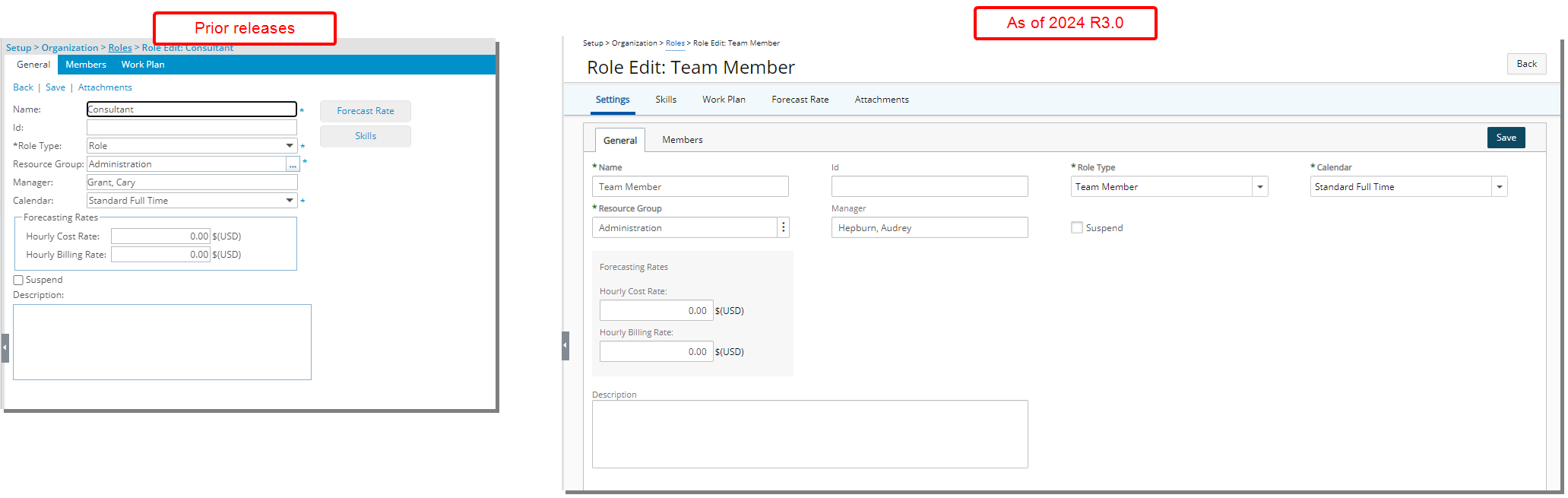 In the upcoming 2025R2 release, there will be changes with static hourly Forecast Cost/Billing rates located in the following four areas of the application: