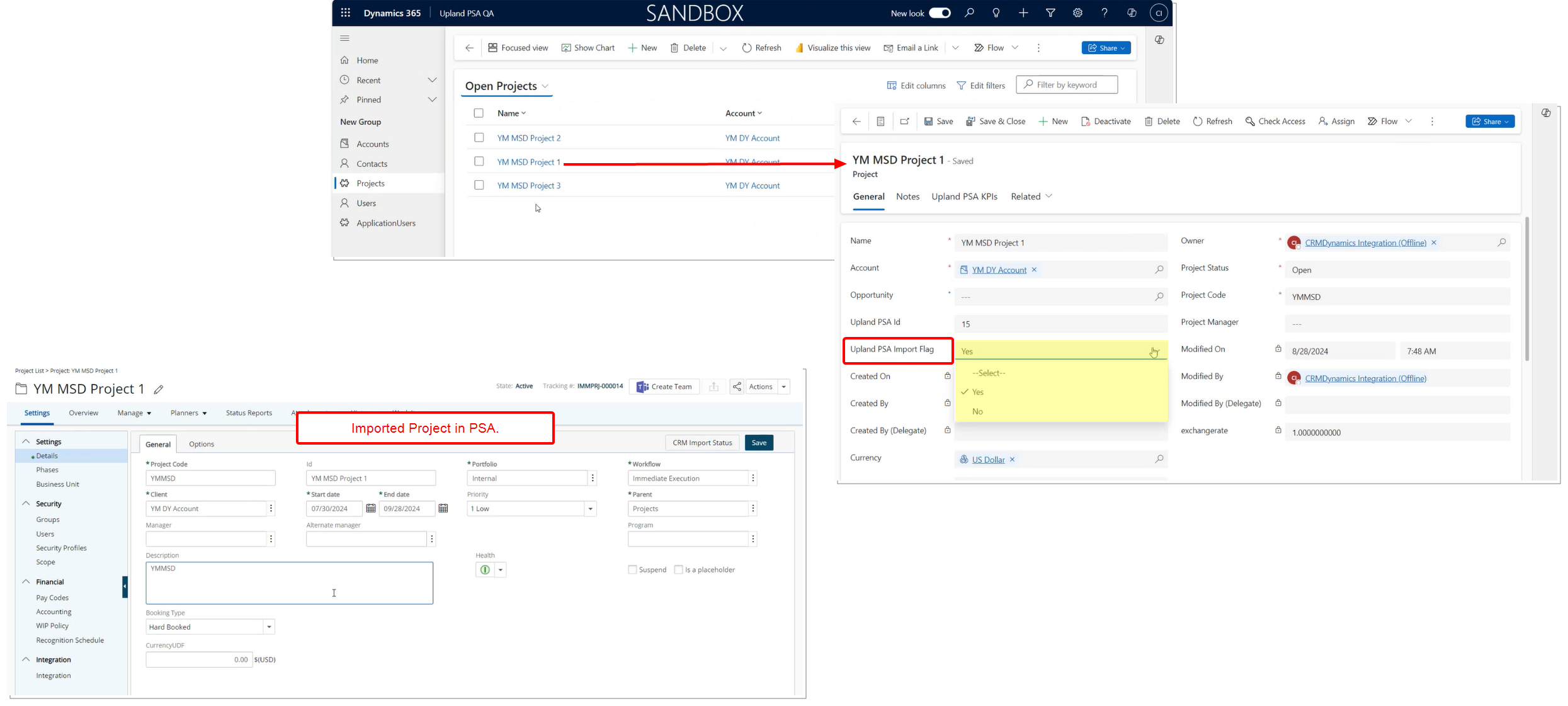 - Checking (default behavior) the Synchronize in PSA box ensures the Task is created or updated in PSA when the Project is saved in UPP.