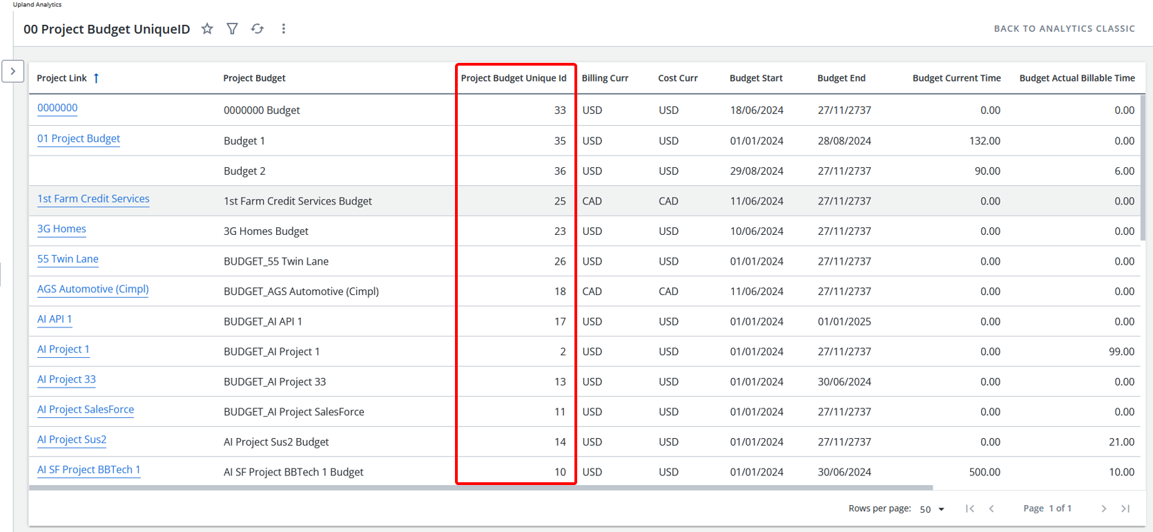 To enhance efficiency, the Project Budget Unique ID has been added to the Project Budget Summary View.