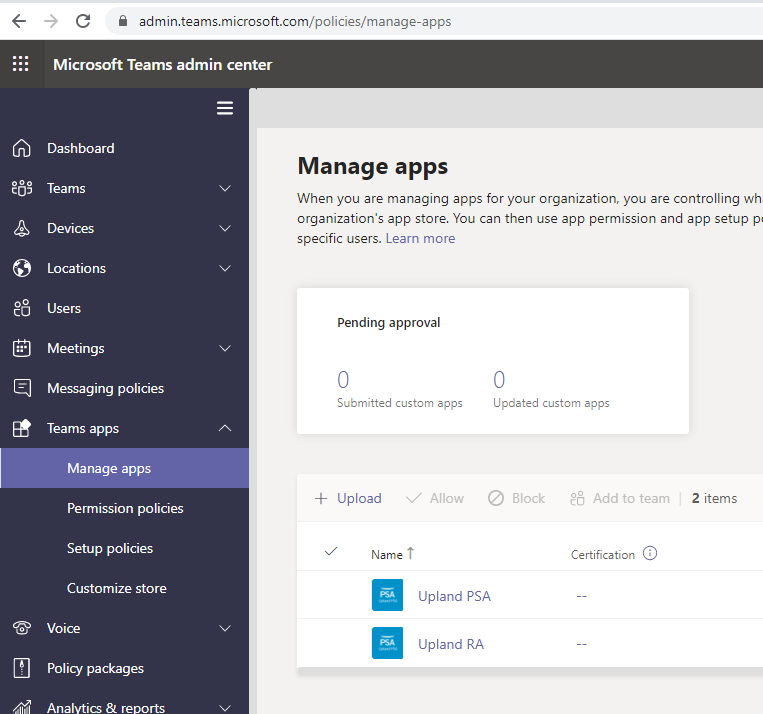 - Navigate to Teams apps > Manage apps in the left-hand menu.