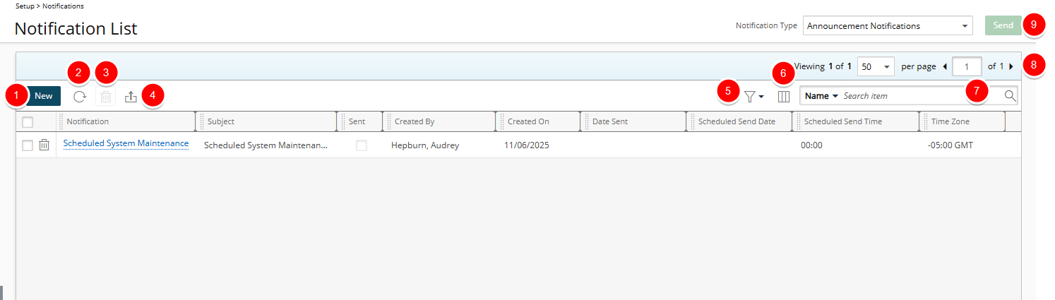 This article details how to access the Announcement Notifications list and the available options to you.