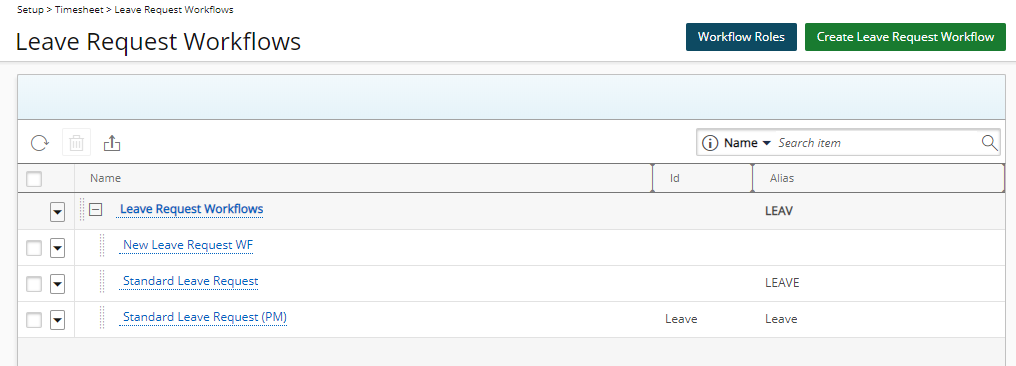 Leave Request Workflows List Page