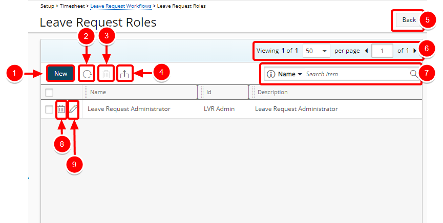 - Click Workflow Roles button access the Leave Request Roles list page.