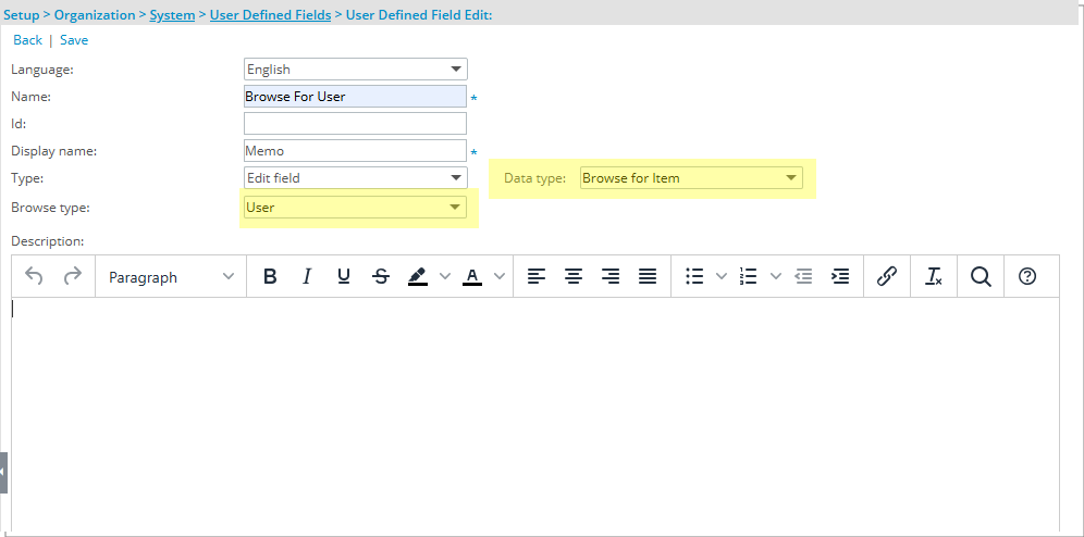 - From the Organization System page, click the User Defined Fields link.