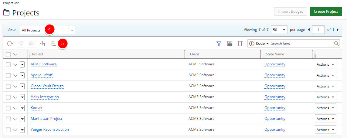 Tip: If you are interested in increasing the number of rows displayed in the Project List Hierarchy view, contact PSA Support to discuss your specific business requirements.