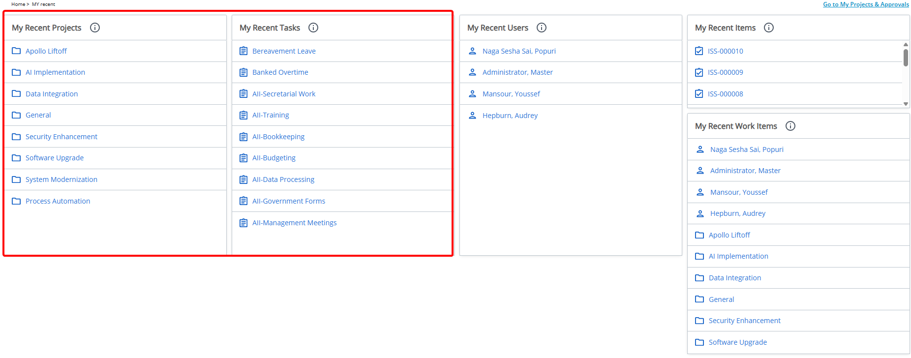 As of this release, the My Projects widget now supports pagination, displaying projects in pages of up to 25 items each. This change improves performance while preserving the existing project sort order, ensuring a familiar and consistent viewing experience.