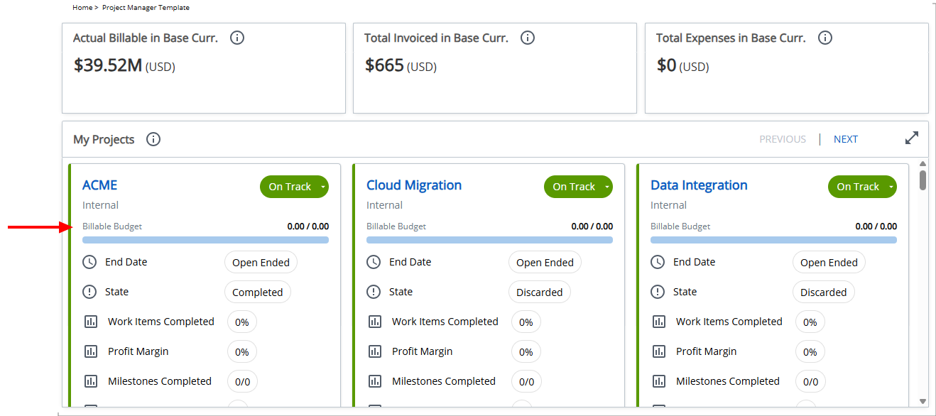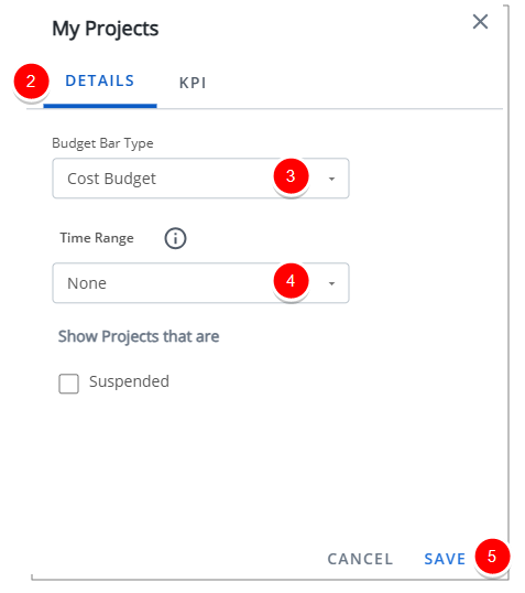 Description: In the previous release, the My Projects Widget displayed only a single budget metric (Cost Budget), limiting the visibility of other important budget-related information.