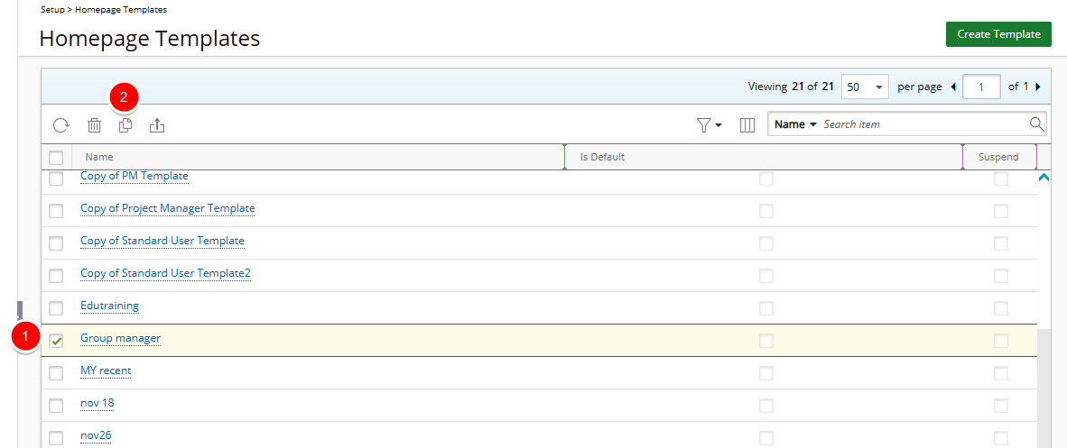 Description: In the previous release, administrators managing Home Page Templates had no quick way to duplicate an existing template. Creating similar layouts required manually recreating widgets, grid placements, and configurations, which was time-consuming and prone to errors.