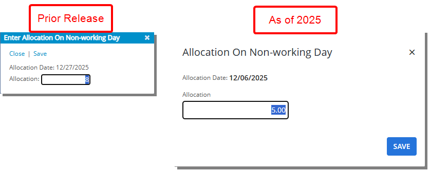 Description: In this release, the Allocation On Non-Working Day dialog box has been redesigned to align with the modern Upland visual style. The refreshed interface features cleaner spacing, improved alignment, and clearer typography visually organized and easier to understand at a glance.
