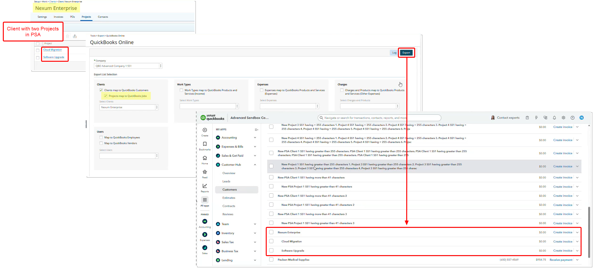 Description: Previously, users could export Clients to QuickBooks Online but could not export individual Projects as Jobs. This limitation required manual creation of Jobs in QuickBooks Online for each Project, leading to increased administrative effort and risk of inconsistencies between PSA and QuickBooks Online.