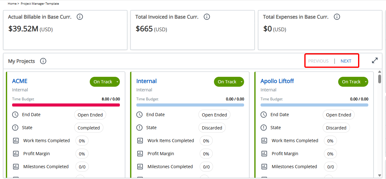 Description: Previously, the My Projects widget displayed all assigned projects in a single, continuous list. For users with a large number of projects, this could lead to slower load times and make navigation more cumbersome on the Home Page.