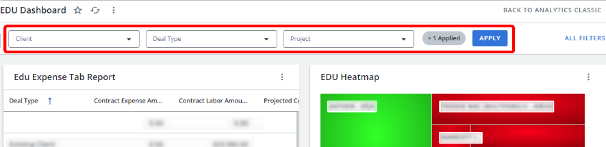 Next, users can select Dashboard Filters to apply filters to their new Dashboard.
