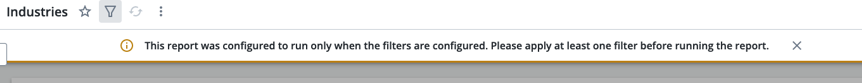 If a user tries to run the report without first applying a filter, an error message will appear with instructions to add one.