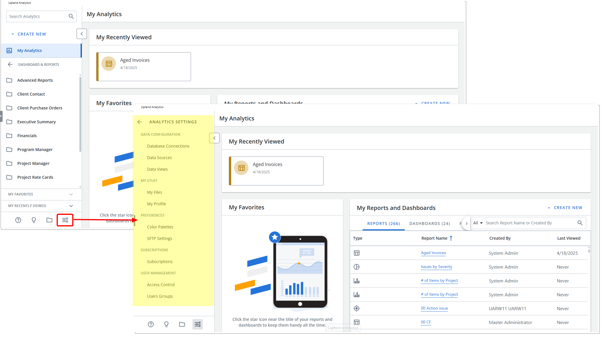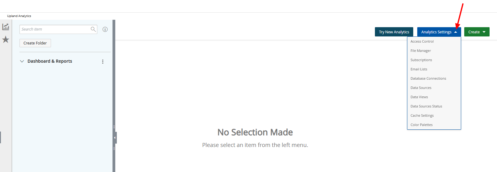 Prior to this release, the Analytics Settings dropdown list was accessible through the Main Menu bar.
