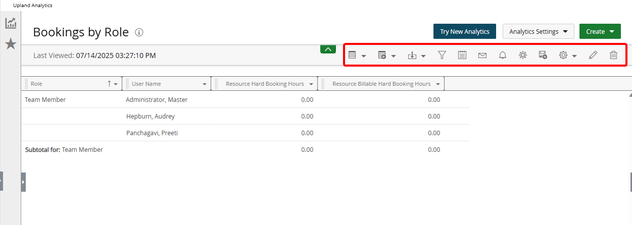 After navigating to Upland Analytics in PSA, select the Try New Analytics button in the top right-hand corner of the screen.