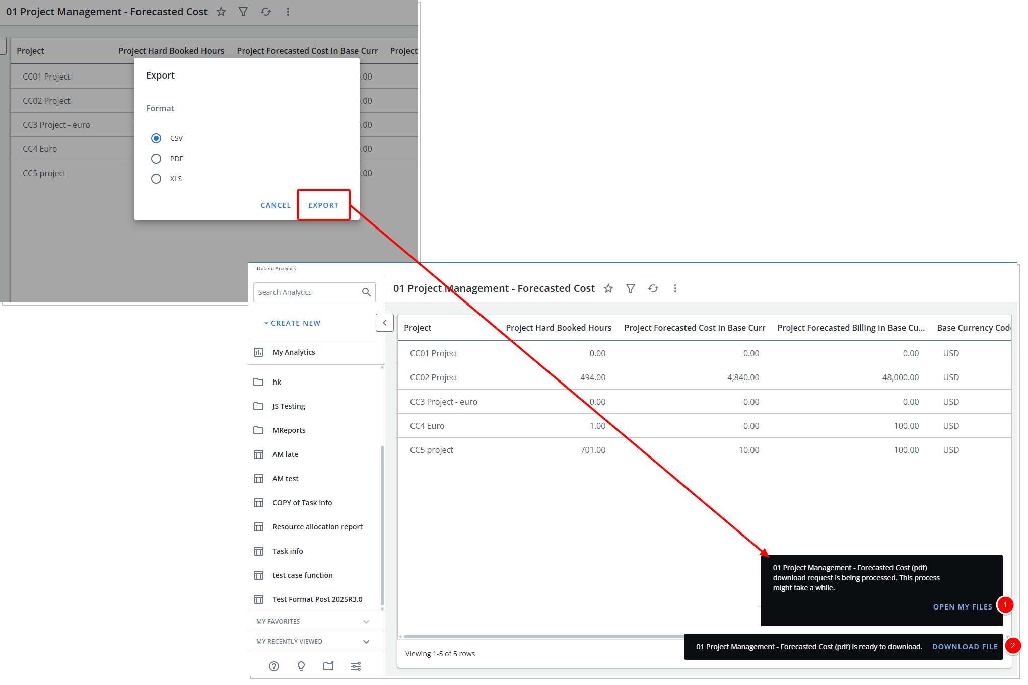 Prior to this release, users were accustomed to the typical browser experience—click Export and immediately see the file appear in the corner of the screen following the browser download processes.