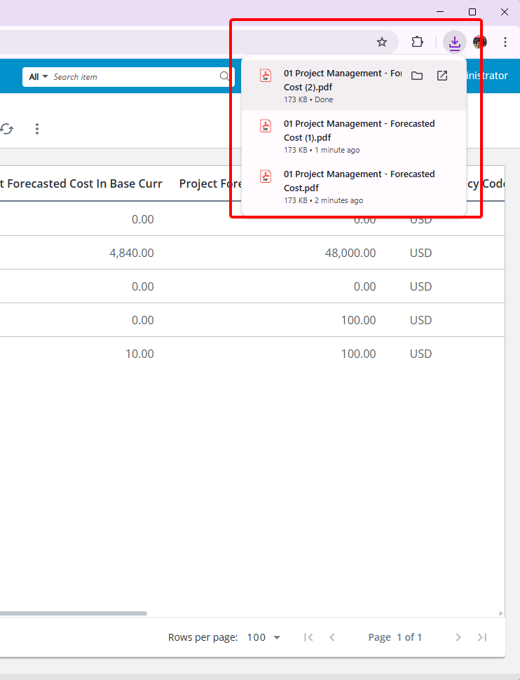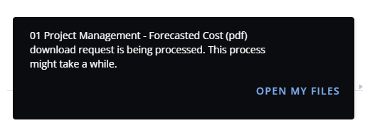 - A popup appears informing you that: {Report Name} download request is being processed. This process might take a while.