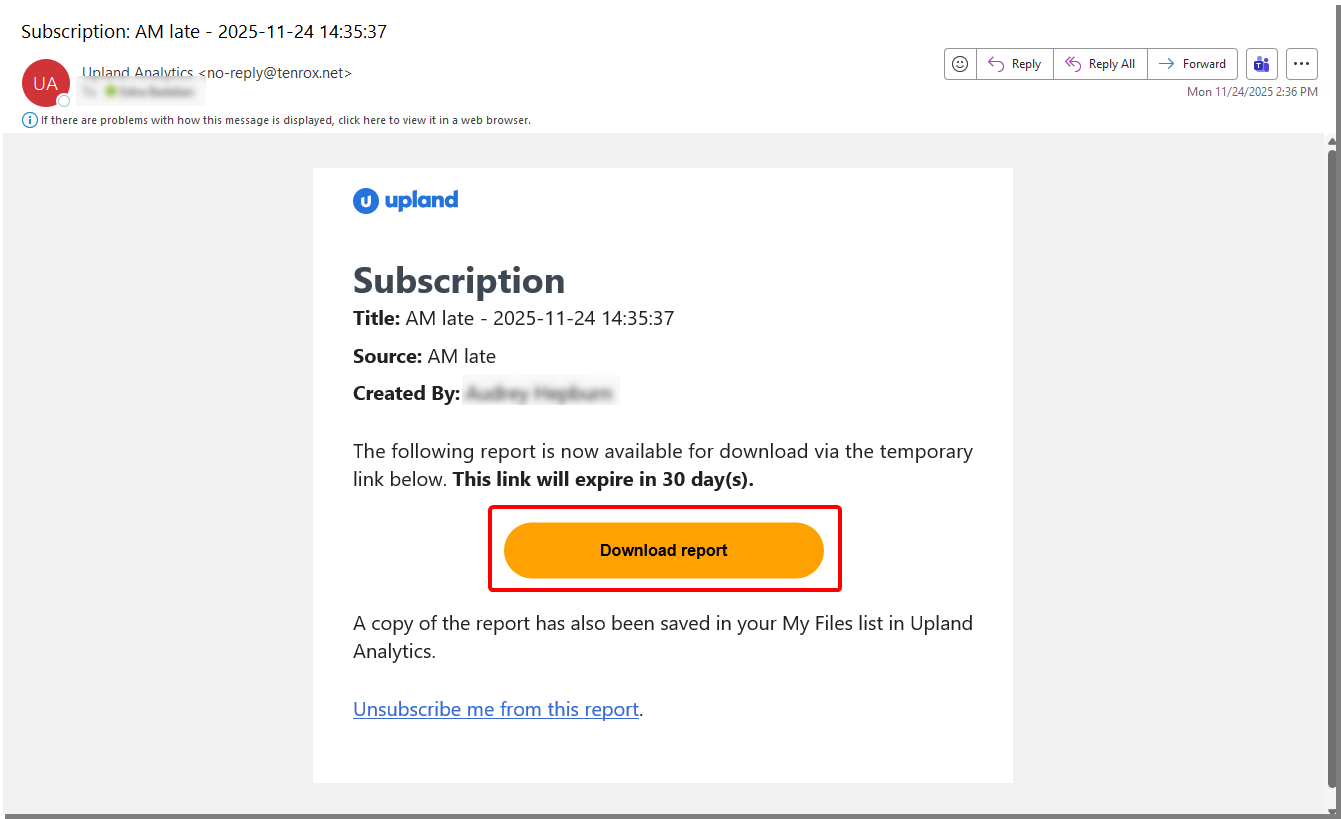 Download Reports/Dashboards from subscription emails