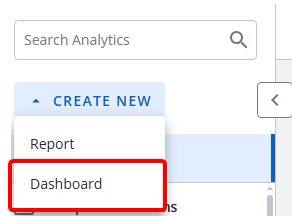 To start, simply select Dashboard from the "Create New" drop-down menu.