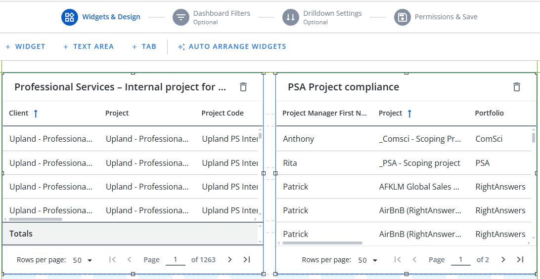 Tip: The Auto Arrange Widgets button is a new alignment feature that automatically arranges widgets with a single click, maximizing space and visual balance. Select it to fit the Widgets to the Dashboard in the most intuitive way.