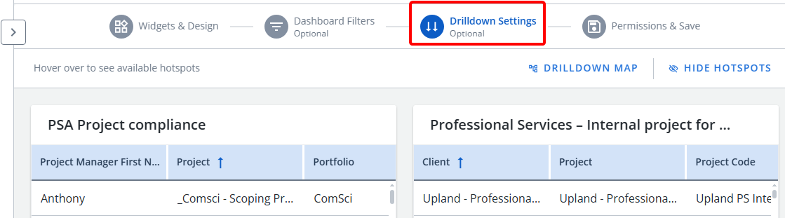 After that, users can select Drilldown Settings to create Drilldowns that will link high-level views of data to more granular insights.