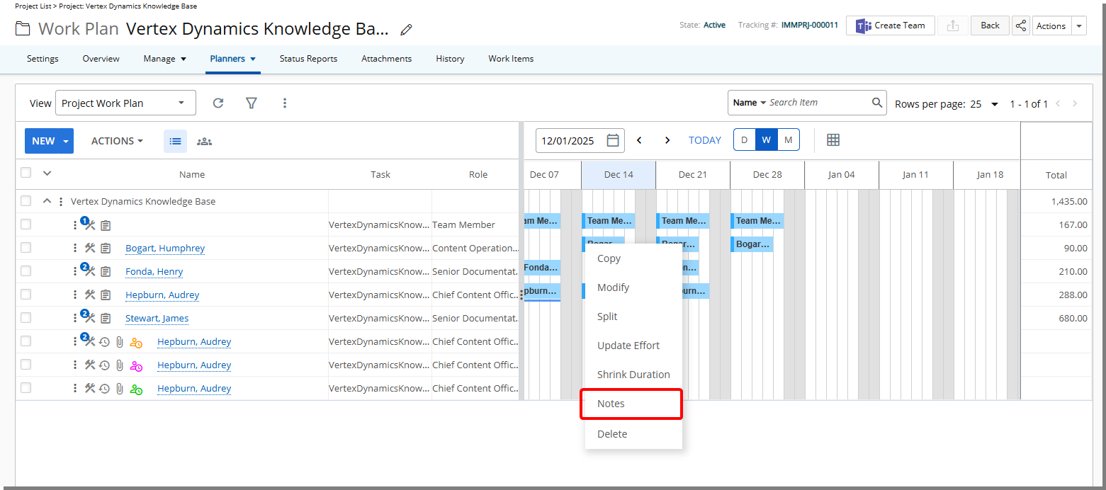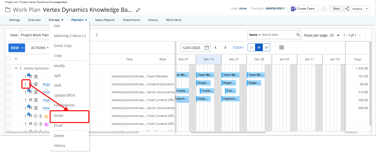 This article guides you through the steps to add a Note to a Booking. While this process is the same across all Work Plans, we will use the Project Work Plan as an example in this article.