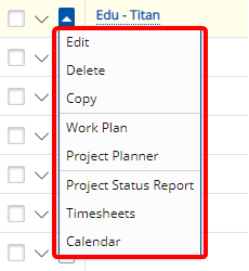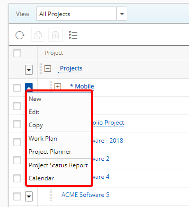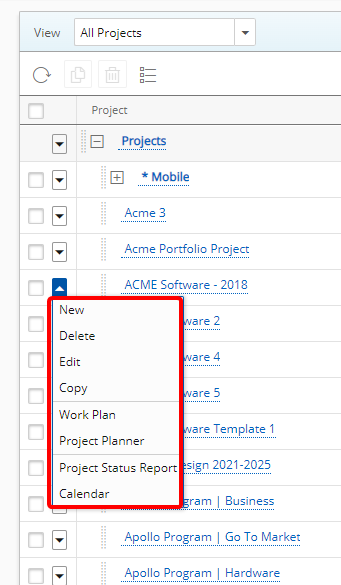 Example: Diana, a Project Manager, who is a heavy user of Project List is now able to use the context menu to perform actions without changing her focus away from the Project List and to easily perform actions such as adding, deleting or accessing the Project Work Plan, Project Planner, Project Status Report and the Calendar with ease and thus improve her performance.