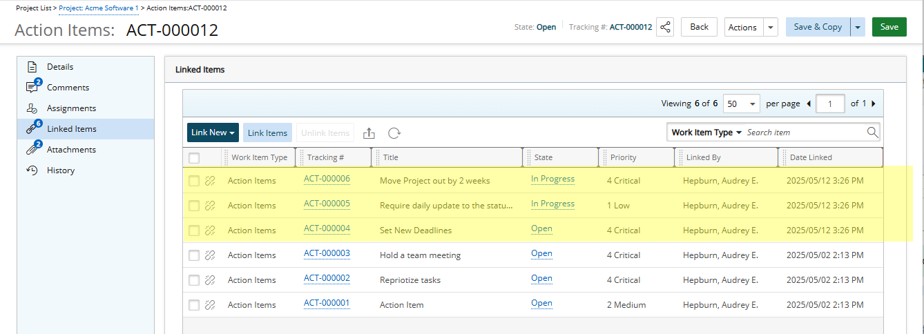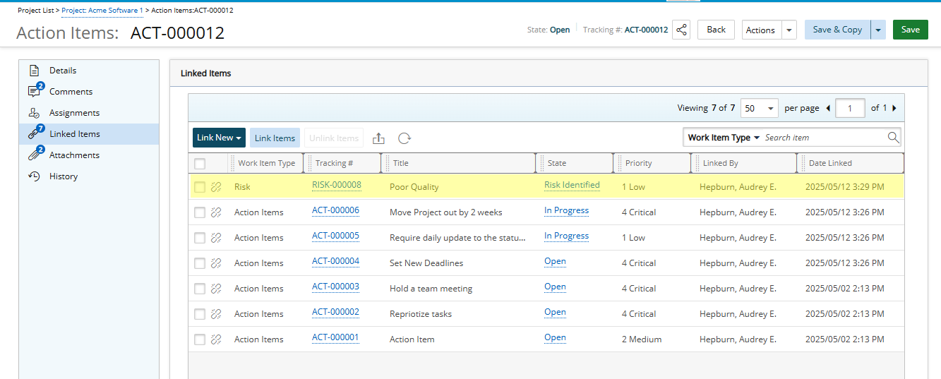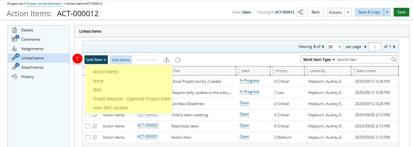 Note: A Project Work Item Entry can be linked to multiple Entries.