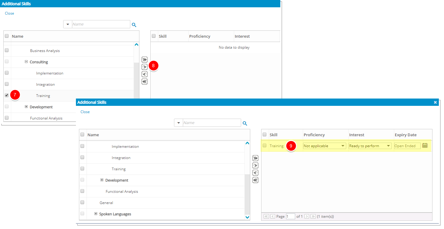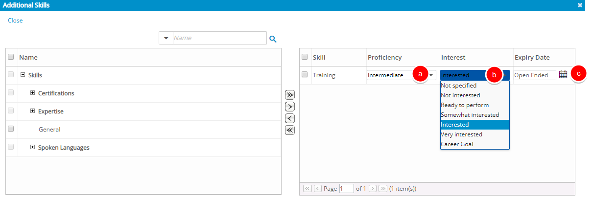 - Cliquez sur Fermer pour revenir à la page Modification des compétences.