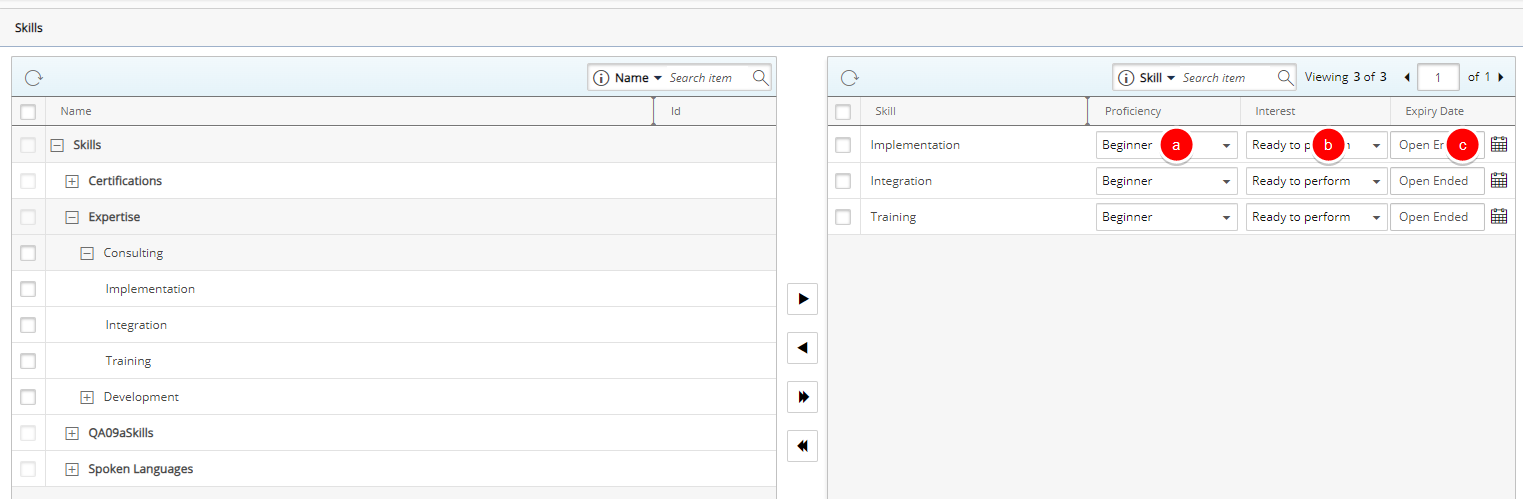 - Le cas échéant, pour chaque compétence, sélectionnez :