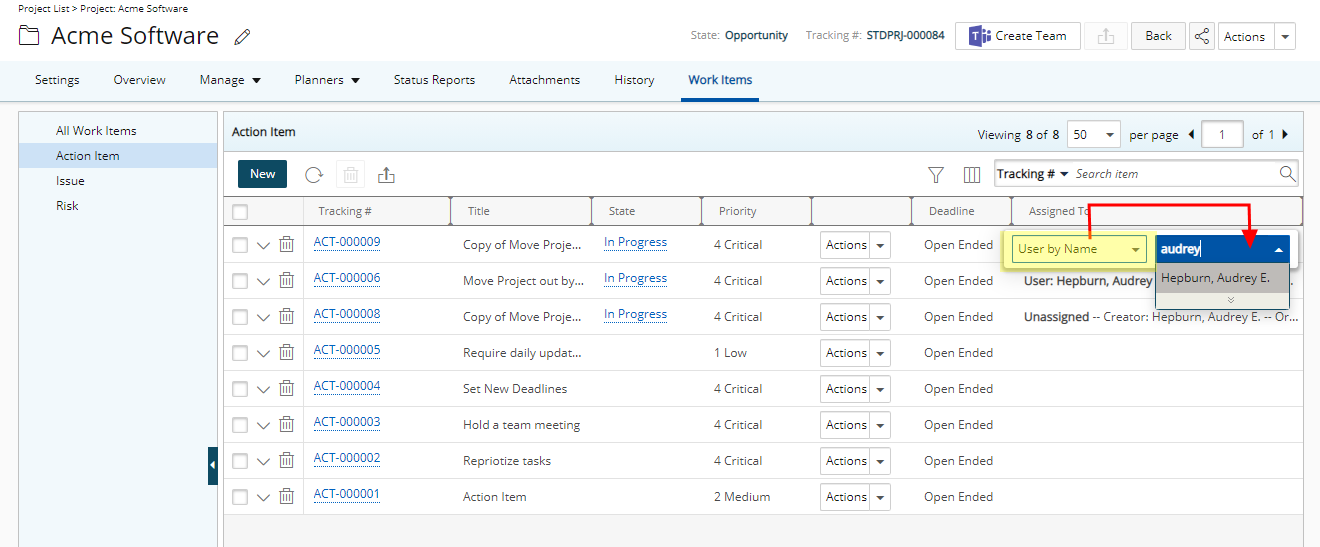 - Membre de l'équipe de projet , puis choisissez le nom du membre de l'équipe requis.