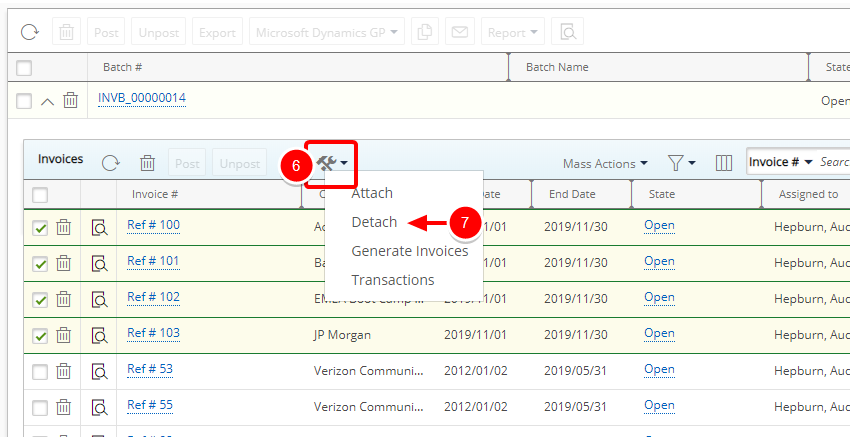 - Sélectionnez la ou les factures que vous souhaitez détacher.
