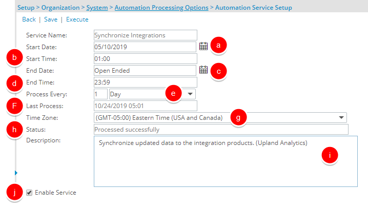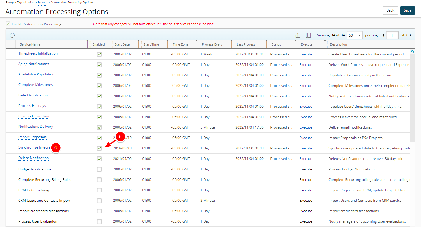 - Activez le service d'automatisation de synchronisation des intégrations.