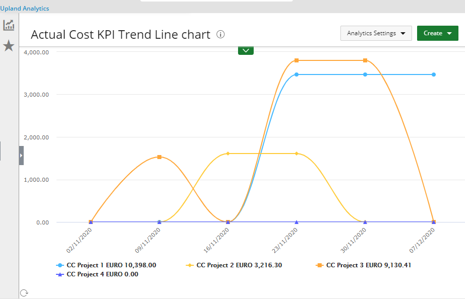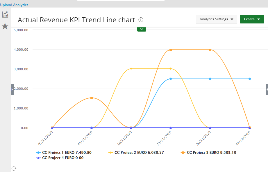 Remarque: Vous pouvez accéder aux rapports graphiques de tendance des KPI de revenus réels ou de courbes de tendance des KPI de coûts réels pour voir la tendance des données par projet.