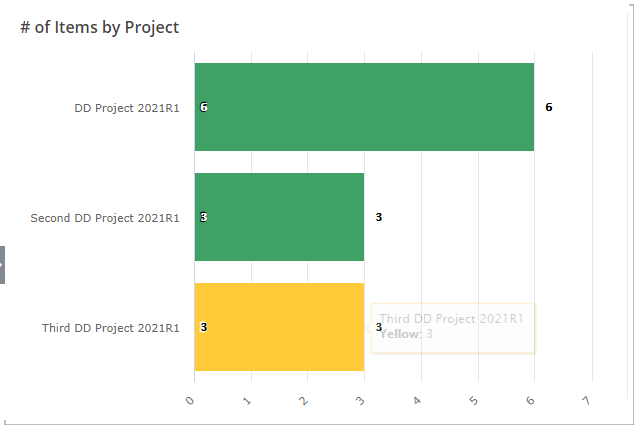 Un graphique à barres affiche le nombre total d'entrées d'éléments de travail ouvertes par rapport aux projets ouverts dans lesquels le responsable actuellement enregistré est le chef de projet nommé.