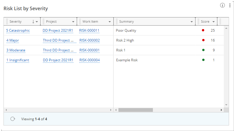 En cliquant sur une gravité, vous ouvrirez le rapport Liste des risques par gravité.