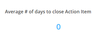 Ce KPI affiche le nombre moyen de jours nécessaires pour clôturer les entrées d'éléments d'action associées aux projets dont l'utilisateur connecté est membre de l'équipe.