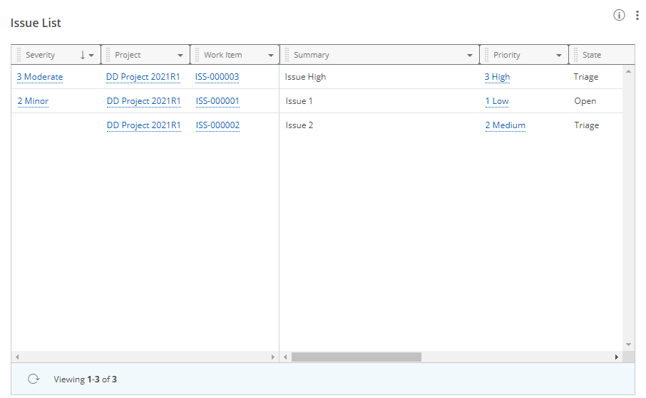 En cliquant sur une priorité, vous pouvez explorer en profondeur pour afficher soit les éléments attribués par priorité, soit les rapports de liste de problèmes.