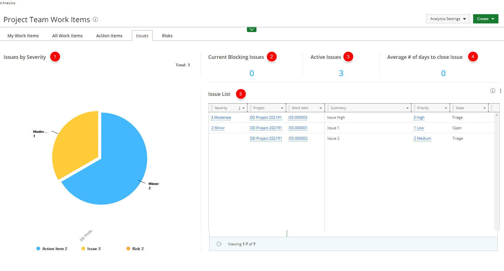En cliquant sur une gravité, vous pouvez effectuer une analyse approfondie pour afficher soit le rapport Éléments attribués par priorité, soit les rapports de liste de problèmes.