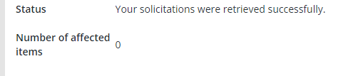 Verify that the status shows that your solicitations were retrieved successfully. You may need to wait and/or refresh the data using the circular arrow at the top of the details screen for this step to complete.