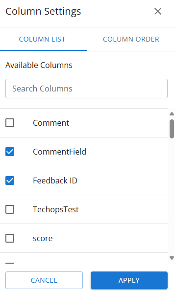 In the Column List tab, select or deselect the checkboxes to include or exclude specific columns.