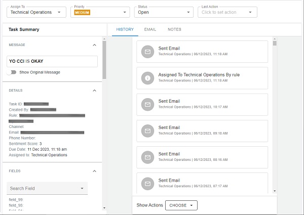 Note: Tasks are given a time limit to inform you how many hours are left on the task. Time limit is set to a default of 72hrs and counts down hourly. When a task is closed the time limit count down stops.