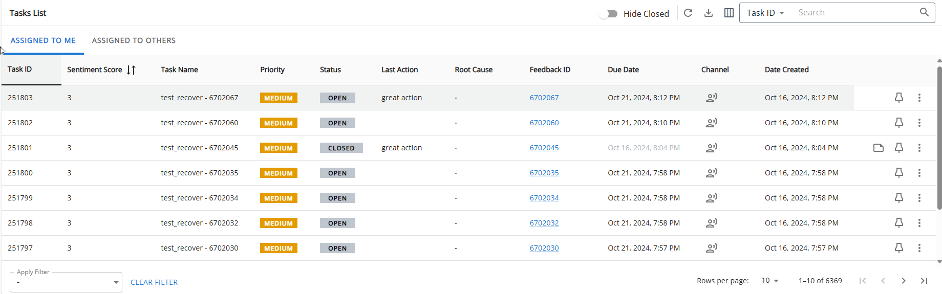 Tip: You can use the search bar to filter your tasks for key search terms, e.g. search for complaints about 'repairs'.