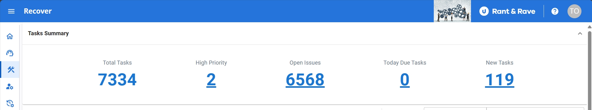 From the Fast Feedback dashboard, open the main menu and select Recover to see your task summary and task list table.