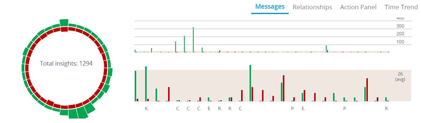 Hover over a positive (green) segment to see exactly how many positive responses you received in that category, or a negative (red) segment to see how many negative responses you received.